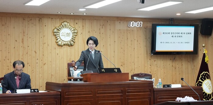 [강진=정찬남 기자] 전남 강진군의회는 21일 제295회 제2차 정례회를 열고, 다음달 12월 19일까지 29일간의 일정으로 올해 마지막 의정활동에 들어갔다.