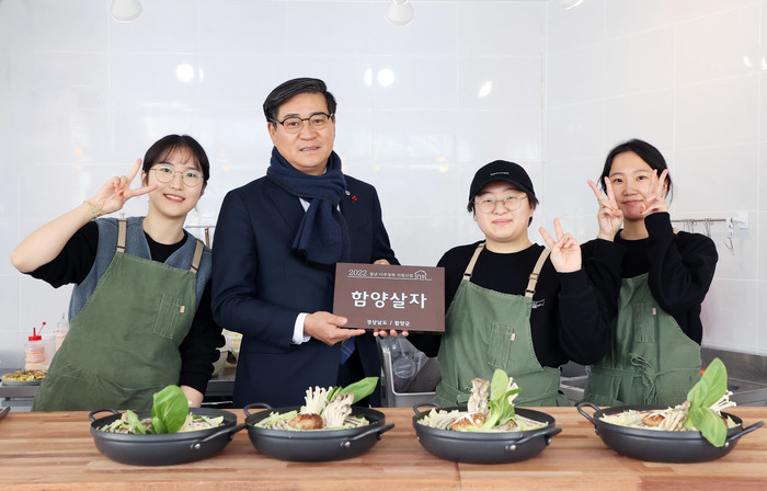 진병영 함양군수는 12월 23일 이번 이주정착 프로젝트를 통해 성공적으로 정착한 ㈜숲속언니들 박세원 대표가 운영하는 ‘함무랑’을 찾아 청년 이주정착 현판식을 함께하며 축하와 함께 사업 번창을 기원했다.