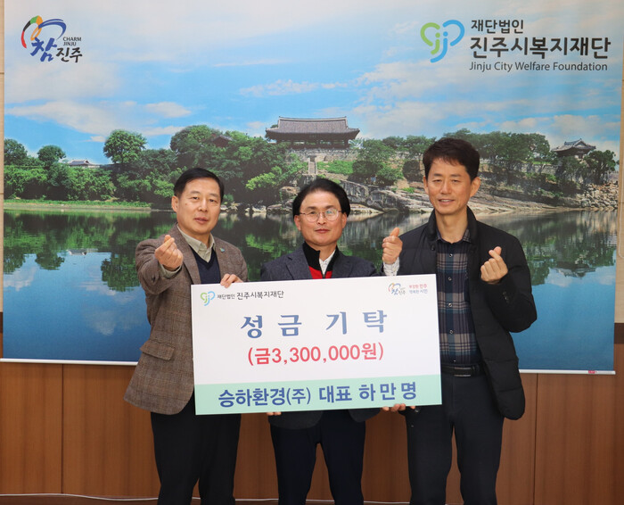진주시복지재단(이사장 이성갑)은 18일 승하환경㈜에서 상대동 관내 저소득층 청소년 학생 지원을 위해 성금 330만 원을 기탁했다고 밝혔다.