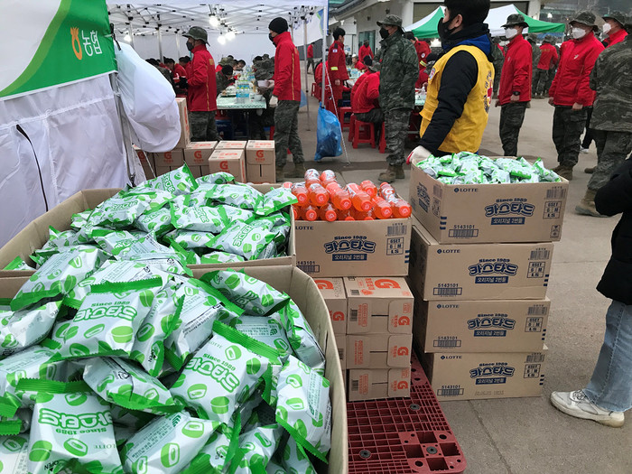 | ▲ 대한적십자사 울진군 지원.(사진제공=롯데제과) |
