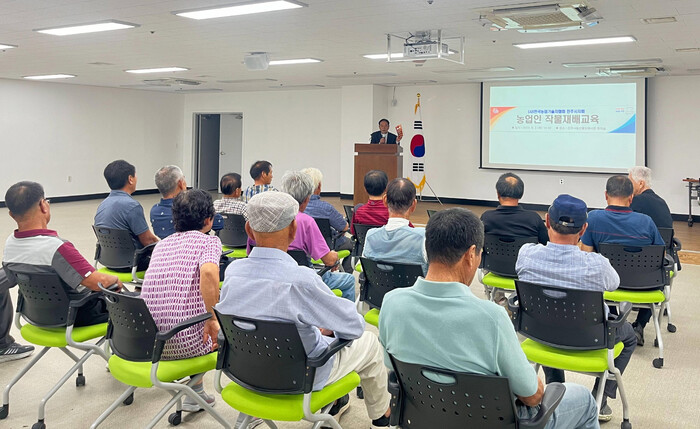 (사)전국농업기술자협회 진주시지회(회장 심재인)는 3일 진주시농산물도매시장 2층 회의실에서 기후변화 대응 농업인 작물재배 교육을 실시했다고 밝혔다.