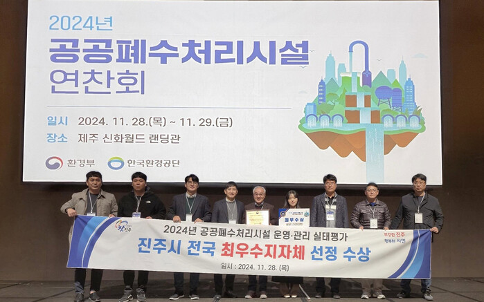 이번 연찬회에서 진주시는 지난 18일 환경부 주관 ‘2024년 공공폐수처리시설 운영·관리실태 평가’에서 전국 ‘최우수 지자체’로 선정된 성과를 인정받아 환경부 장관 표창과 함께 포상금을 받았다.