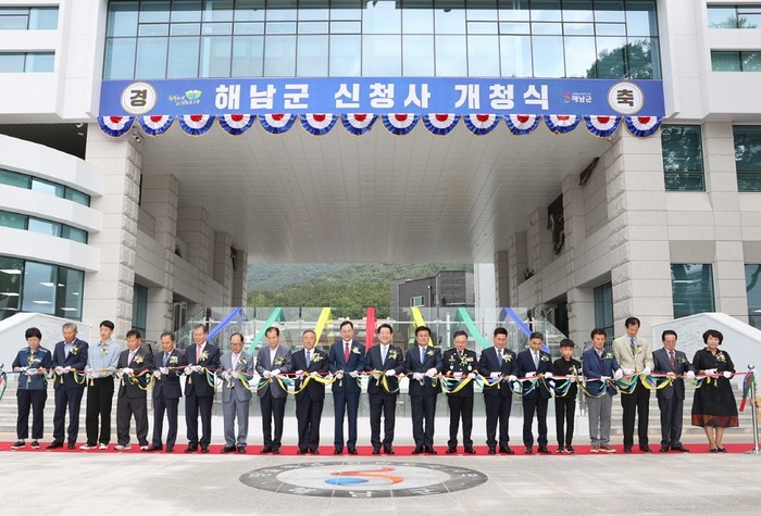 해남군 신청사는 연면적 1만 8601㎡, 군청사 7층, 군의회 청사 5층 규모로 2019년 착공해 지난해 8월 완공됐다.