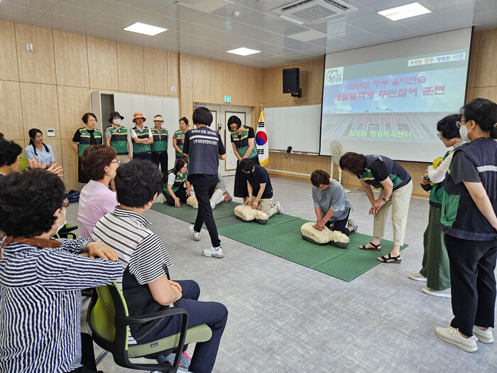 진주시 상봉동 행정복지센터는 지난 19일 ‘2024년 을지연습’과 연계한 생활밀착형 주민훈련을 실시했다.