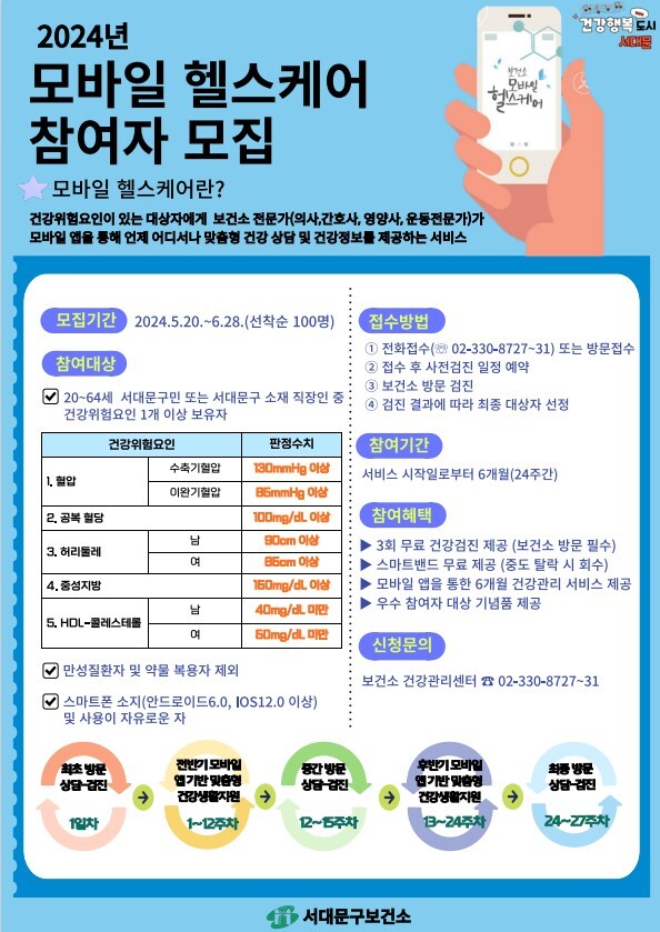 | ▲ 서대문구 모바일 헬스케어 참여자 모집 포스터 (사진=서대문구청 제공) |