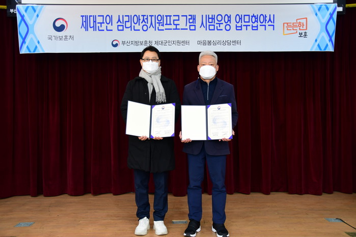 부산지방보훈청(청장 임성현) 제대군인지원센터는 21일 부산 중구 소재 마음봄심리상담센터(소장 이정민)와 업무협약을 맺었다.