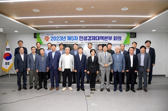 [광주=정찬남 기자] 광주광역시(시장 강기정)는 고금리·고물가 등으로 어려움을 겪고 있는 서민(가계)경제 안정을 위해 29일 소상공인시장진흥공단 광주호남지역본부에서 ‘2023년 제5차 민생경제대책본부’ 회의를 개최했다.
