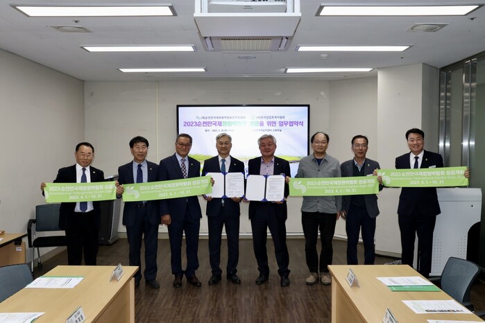 [순천=이문석 기자](재)순천만국제정원박람회조직위원회(이사장 노관규, 순천시장)와 한국임업후계자협회가 순천만국가정원 습지센터에서 박람회 성공개최를 위한 업무협약식과 1천만원 상당의 입장권 구매 전달식을 가졌다고 28일 밝혔다.