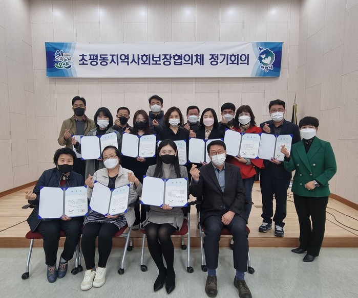 경기 오산시 초평동지역사회보장협의체는 4기 출범과 지역사회보장협의체 활동을 시작한 가운데 최근 2022년 제3차 정기회의를 열고 4기 위원들에게 위촉장을 전달했다. 사진은 이날 위촉된 신규위원들이 기념촬영을 하는 모습. (사진제공=오산시청)