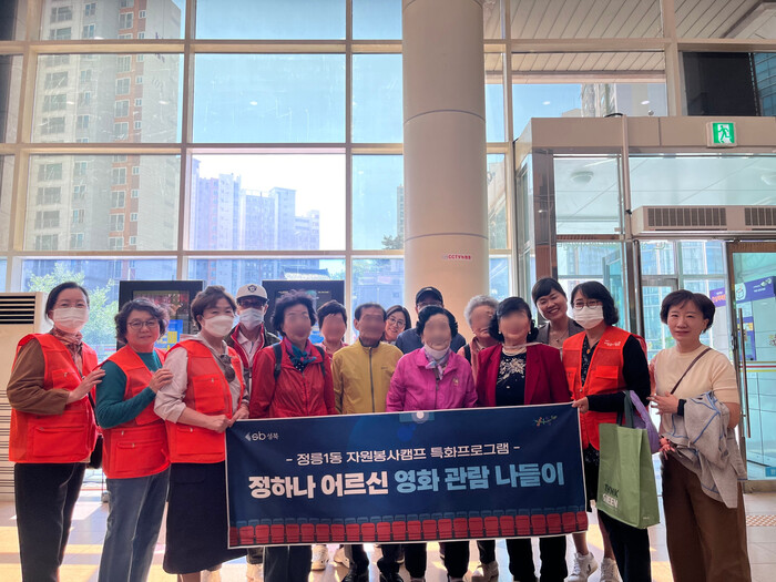 [시민일보 = 변은선 기자] 서울 성북구(구청장 이승로) 정릉1동 자원봉사캠프가 최근 아리랑시네센터를 찾아 어르신 10명과 함께 ‘정하나 어르신 영화관람 나들이’를 진행했다.