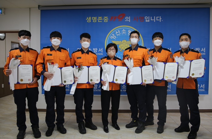 또, 윤성웅 소방장, 배재호 소방교, 배성윤 소방교, 윤경빈 소방장, 차재철 소방장, 여재민 소방교는 지난 10월 19일 한 자택에서 발생한 심정지환자에 대해 신속·정확한 환자평가 및 적극적인 심폐소생술로 소중한 생명을 구한 바 있다.
