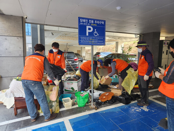 이날 원활한 주거환경개선사업을 위해 모인 평거동 지역사회보장협의체 위원들은 대상 가구의 집안의 각종 생활 폐기물을 치우고 청소를 실시했다.