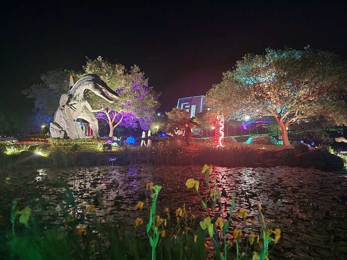 | ▲ 야간에도 개장된 해남굥룡박물관과 티라노사우르스 공룡 모형 / 해남군 제공 |
