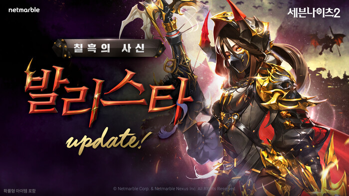 [시민일보 = 여영준 기자] 넷마블은 모바일 MMORPG <세븐나이츠2>에 신규 전설 플러스 등급 영웅 ‘칠흑의 사신 발리스타’ 추가 등 다양한 업데이트를 진행했다고 12일 밝혔다.