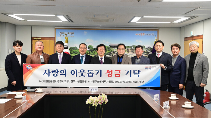 (사)대한한돈협회 진주지부(지부장 박용한)에서 성금 1000만 원, 진주시산림조합(조합장 정덕교)에서 성금 1000만 원, (사)진주소힘겨루기협회(협회장 박성권)에서 성금 200만 원, 순실크·실크커피개발사업단(대표 박태현)에서 성금 100만 원을 지역사회 어려운 이웃을 위해 사용해 달라며 진주시복지재단에 기탁했다.