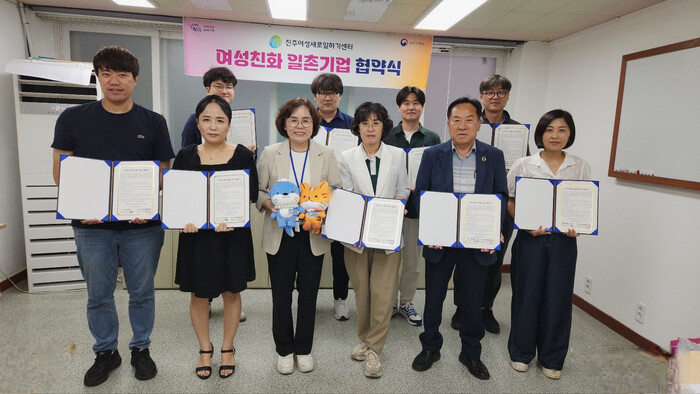 진주여성새로일하기센터가 지난 22일 진주시 관내 10개 병의원 및 중소기업과 ‘여성친화일촌기업 협약’을 체결하며 여성친화적 기업문화 확산에 본격적으로 나서 관심을 모으고 있다.
