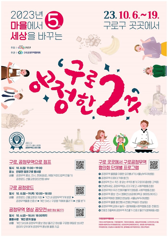 10월 8일부터 19일까지는 구로 공정무역판매점을 방문해 공정무역 물품과 함께 찍은 사진을 본인의 SNS나 구로공정무역협의회 네이버 카페에 올리면 선물을 증정하는 이벤트가 진행된다.