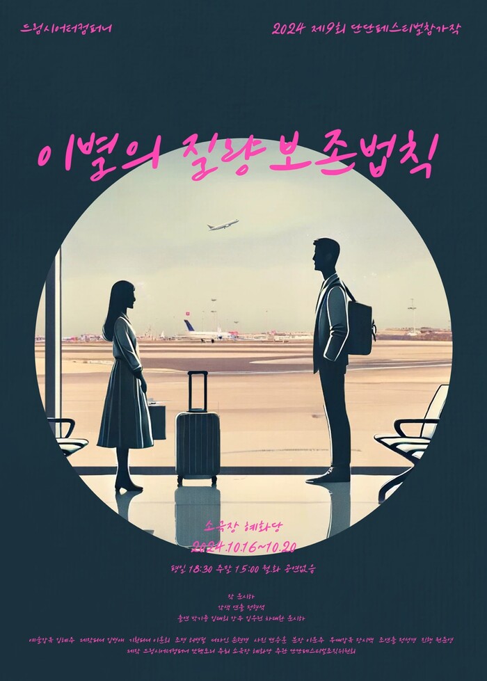 연극 ‘이별의 질량 보존 법칙’은 이별 후 해외로 떠나는 젊은 여자와 공항으로 그녀를 배웅 나온 젊은 남자, 그리고 이혼 후 외국에 살다 경유차 공항에 들른 중년 여자와 그를 기다리는 전 남편, 이들 네 인물의 이야기를 담고 있다.