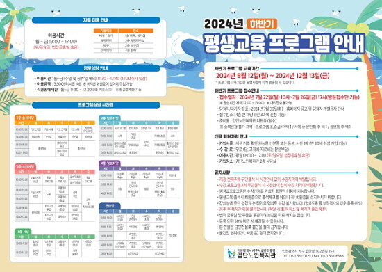 | ▲ 2024년 하반기 평생교육 프로그램 수강생 모집 (사진제공=검단노인복지관) |