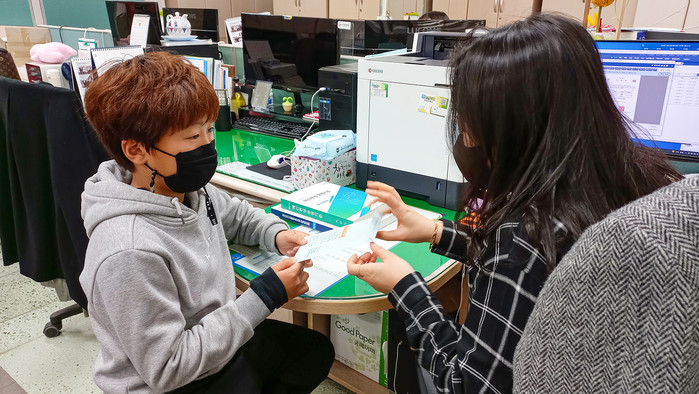 충남 서산시 서림초등학교에 재학 중인 4학년 위대호 어린이가 지난 16일 명절 용돈 5만원을 산불 피해 복구 성금으로 전달했다. 사진은 위대호 군이 시 사회복지과를 방문해 성금으로 전달하는 모습. (사진제공=서산시청)