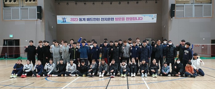 | ▲ 강진군에서 동계전지 훈련 중인 배드민턴팀 단체 기념촬영 / 강진군 제공 |