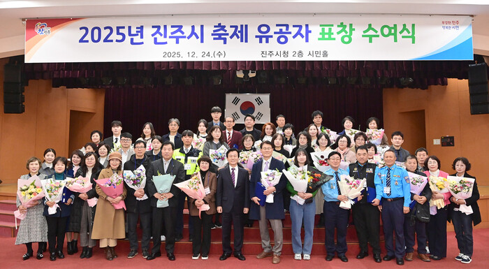 진주시는 24일 시청에서 올해 축제의 성공적인 개최에 기여한 유공자들의 노고와 헌신을 기리기 위해 ‘2025년 진주시 축제 유공 표창 수여식’을 개최했다.