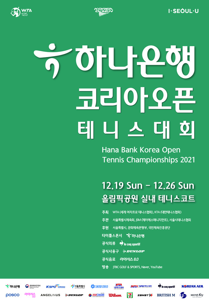 [시민일보 = 여영준 기자] 하나은행은 19~26일 총 8일간 서울시 송파구 올림픽공원 실내코트에서 국내 유일의 WTA(Women's Tennis Association) 정규 투어 테니스 대회인 '2021 하나은행 코리아오픈 테니스대회'(이하 '코리아오픈')를 개최한다고 밝혔다.