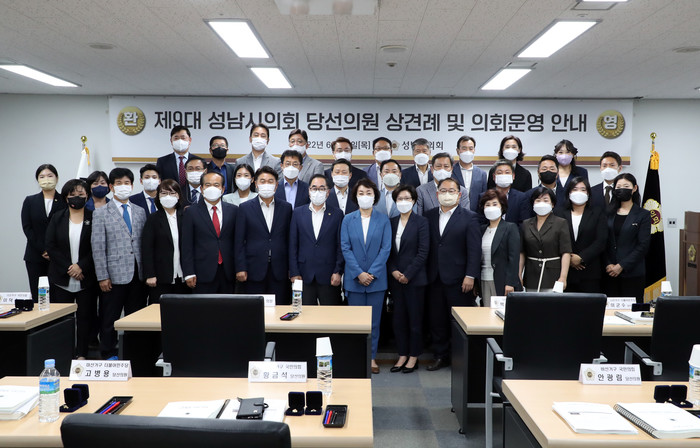 [성남=오왕석 기자] 성남시의회(의장 윤창근)는 6월 23일 성남시의회 4층 세미나실에서 제9대 성남시의회 당선의원 34명과 의회사무국 직원들이 참석한 가운데 첫 상견례 및 의정 특강을 개최하였다.