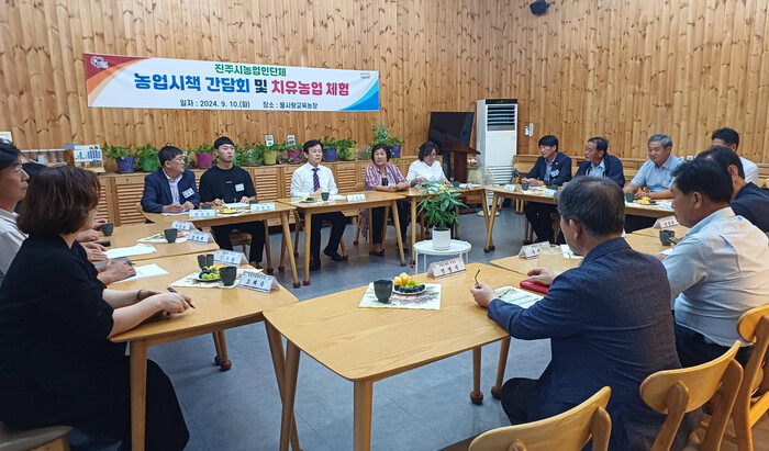 진주시는 지난 10일 대평면 소재 물사랑 교육농장에서‘농업인단체 농업시책 간담회’를 가졌다.
