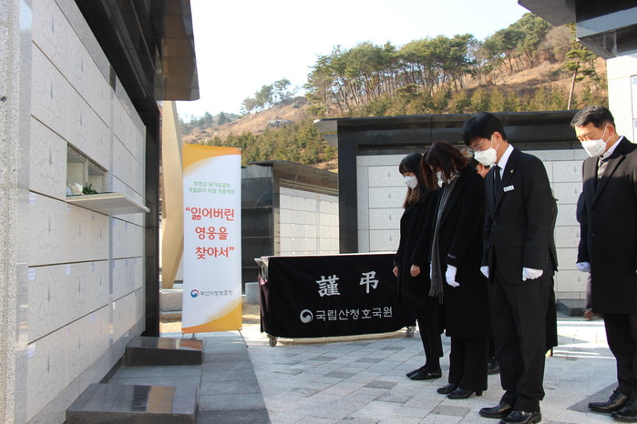 부산지방보훈청(청장 임성현)은 23일 국립산청호국원 봉안담에서 무연고 국가유공자의 안치식을 열었다고 밝혔다.