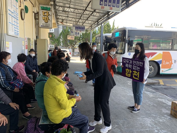 이번 캠페인은 장날을 맞아 군민의 이동이 잦은 합천시외버스터미널 등에서 민.관.경 합동 홍보를 실시하여 폭력에 대한 관심을 유도하고, 폭력 피해 발생 시 지원을 받을 수 있는 기관 안내 및 홍보물품을 전달 하여 홍보 효과를 높였다.