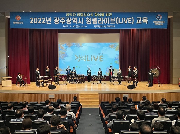 [광주=정찬남 기자] 광주광역시는 청렴교육 전문기관인 국민권익위원회 청렴연수원과 공동으로 30일 시청 대회의실에서 시 공직자를 대상으로 ‘청렴 라이브 콘서트’를 실시했다.