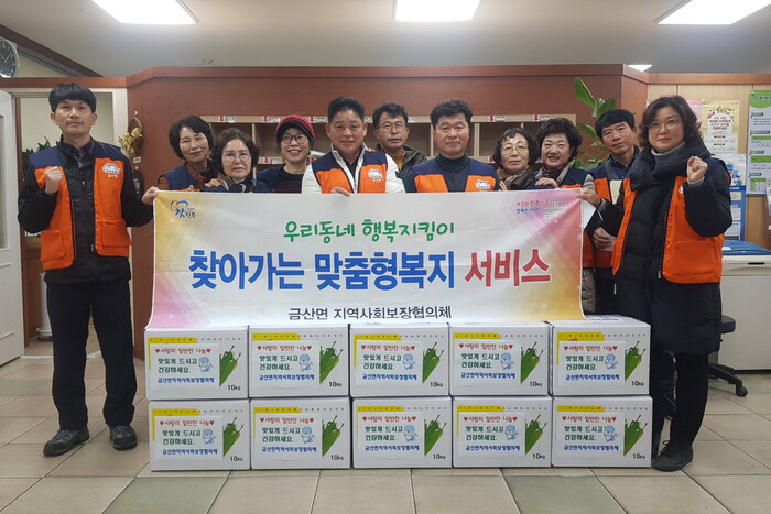 금산면 지역사회보장협의체(위원장 허남우)는 15일 연말을 맞아 홀로 계신 어르신 10가구를 방문해 사랑의 밑반찬을 전달하는 맞춤형 봉사활동을 실시했다.