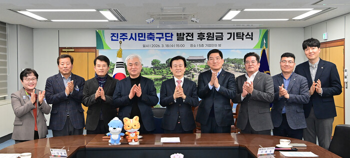 진주시는 18일 진주시청 기업인의 방에서 NH농협 진주시지부와 경남은행의 ‘진주시민축구단 발전을 위한 후원금 전달식’을 개최했다고 밝혔다.