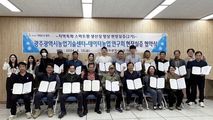 [광주=정찬남 기자] 광주광역시농업기술센터와 데이터농업연구회는 12일 농업기술센터 스마트농업교육관에서 ‘데이터 활용 역량 강화 및 농작물의 생산성 향상을 위한 현장실증 연구 협약’을 체결했다.