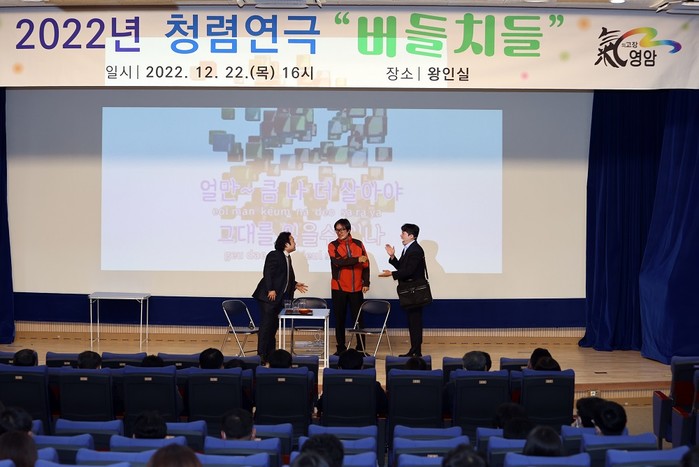 | ▲ 영암군, 지난 22일 영암군청 왕인실에서 공직자 대상 청렴연극 '버들치들' 공연 / 사진=영암군 제공 |