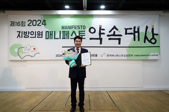 [시민일보 = 여영준 기자] 한국매니페스토실천본부는 지난 27일 영등포아트홀에서 ‘제16회 2024 지방의원 매니페스토 약속대상’ 시상식을 열고 좋은조례 분야 기초의원 최우수 수상자로 금천구의회 고영찬 의원을 선정했다.
