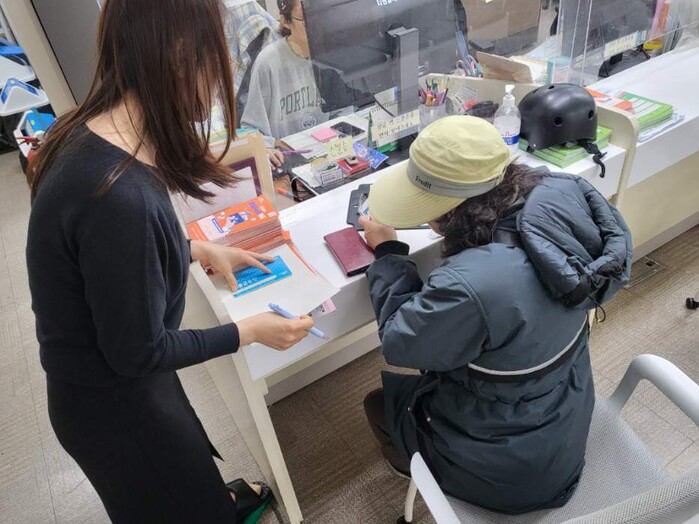 | ▲ 위기가구 신고자 포상금 신청서를 작성하는 사진 (사진=구로구청 제공) |