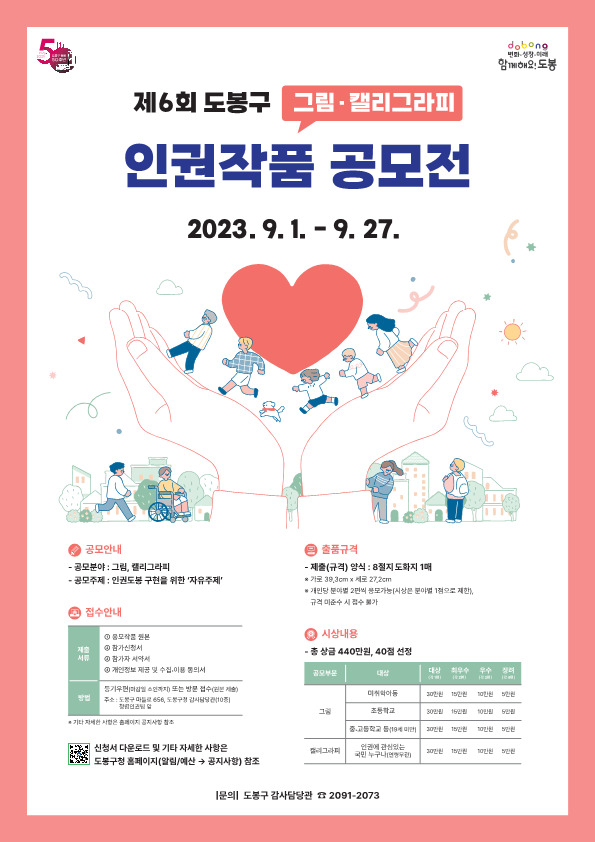 [시민일보 = 여영준 기자] 서울 도봉구(구청장 오언석)가 '2023년 제6회 도봉구 인권작품 공모전'을 개최한다.