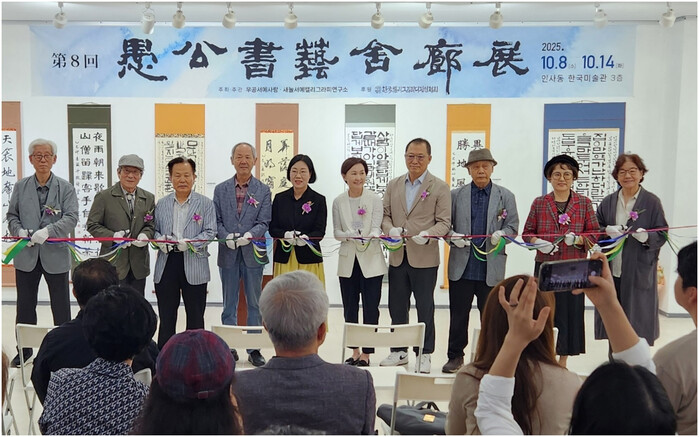 이날 인사말을 통해 장혜란 우공서예사랑회 회장은 "서로 다른 가치와 목표로 시작했지만, 지금은 같은 곳을 바라보며 동행하는 우리 회원들의 정성을 모아 여덟 번째 전시회를 선보인다. 점, 선, 획 그리고 먹과 종이의 아름다움을 가득 담아 준비했다. 가을 날의 감동을 만끽할 수 있길 고대한다”고 전했다.