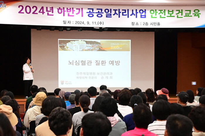 진주시는 11일 시청 2층 시민홀에서 2024년 하반기 공공일자리 187개 사업 참여자 340여 명을 대상으로 안전보건 교육을 실시했다.