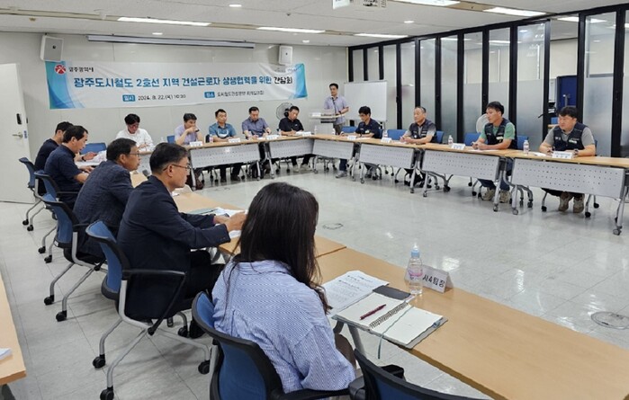 이날 간담회는 최근 금리인상과 인건비·건설자재 가격상승으로 건설경기가 침체되고 있는 가운데 발주처인 광주도시철도건설본부가 2호선 2단계 건설사업내 지역근로자 고용을 권장하고 시공사와 건설근로자의 상생협력을 위해 마련했다.