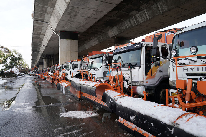 시는 지난 15일 비상단계별 재난안전대책본부를 구성하고, 제설 차량 221대와 제설제 1만9천883톤을 확보해 작년보다 차량 6대, 제설제 약 6천톤을 추가 준비했다. 또 이면도로 제설 강화를 위해 50개 동 전역에 임차용역 체계를 구축해 보다 촘촘한 제설 계획을 마련했다.