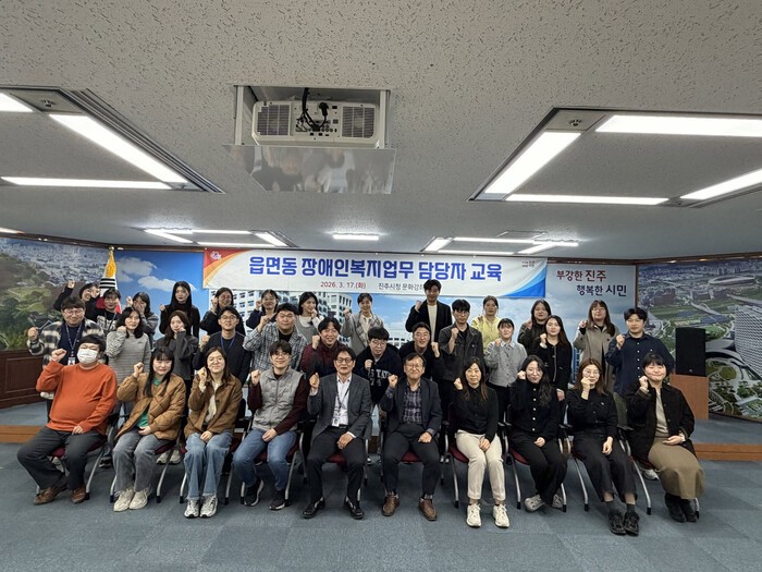 진주시는 지난 17일 시청 3층 문화강좌실에서 읍면동 장애인복지 업무 담당자 30여 명을 대상으로 업무 역량 강화와 장애인복지 실무 지식 습득을 위한 직무교육을 실시했다.