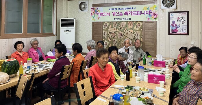 박순희 자원봉사회장은 “오랜만에 개최된 생신상 차려드리기 행사에 많은 분이 참여하셔서 자리를 빛내주신 덕분에 더 의미있는 시간이었다”며 “언제든 묘산면에 도움이 되는 자원봉사회가 되도록 더 노력하겠다”고 전했다.