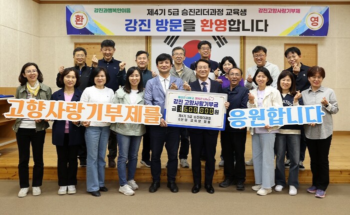전남 강진군은 지난 9일, 지방자치인재개발원 제4기 5급 승진리더과정 6분임 교육생이 교육기간 중 현장학습 차 강진을 찾아 고향사랑기부금 160만 원을 기탁했다.