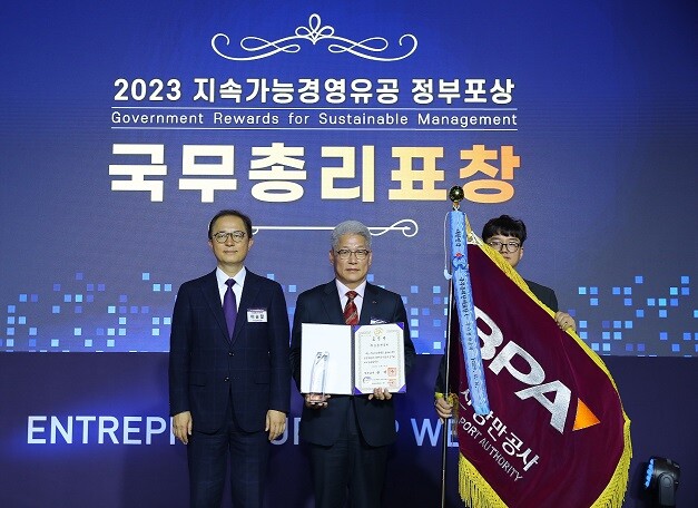[부산=최성일 기자] 부산항만공사(BPA, 사장 강준석)가 14일 산업통상자원부와 중소벤처기업부가 주최한 ‘2023 지속가능경영 유공 정부포상’ 시상식에서 공공부문에서 최고성적을 얻어 유일하게 ‘국무총리 표창’을 수상했다.