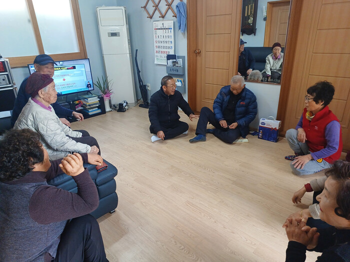 이날 방문을 통해 겨울철 어르신들의 건강과 안부를 확인하고, 군정의 새로운 시책과 산불예방 홍보, 따뜻한 마음을 주고받는 검소한 명절 보내기와 경로당 이용 불편 사항과 건의 사항을 청취하면서 소통의 시간도 가졌다.