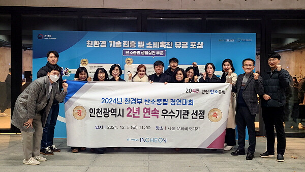 [인천=김형만 기자] 인천시는 12월 5일 서울 문화비축기지에서 개최된‘2024 탄소중립 경연대회’에서 환경부장관 기관 표창을 수상했다고 밝혔다.