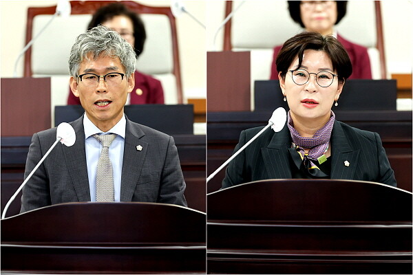 | ▲ 14일 열린 제280회 동구의회 임시회 1차 본회의에서 최훈 의원과 오수연 의원이 의정자유발언을 하고 있다. (사진제공=인천동구의회) |